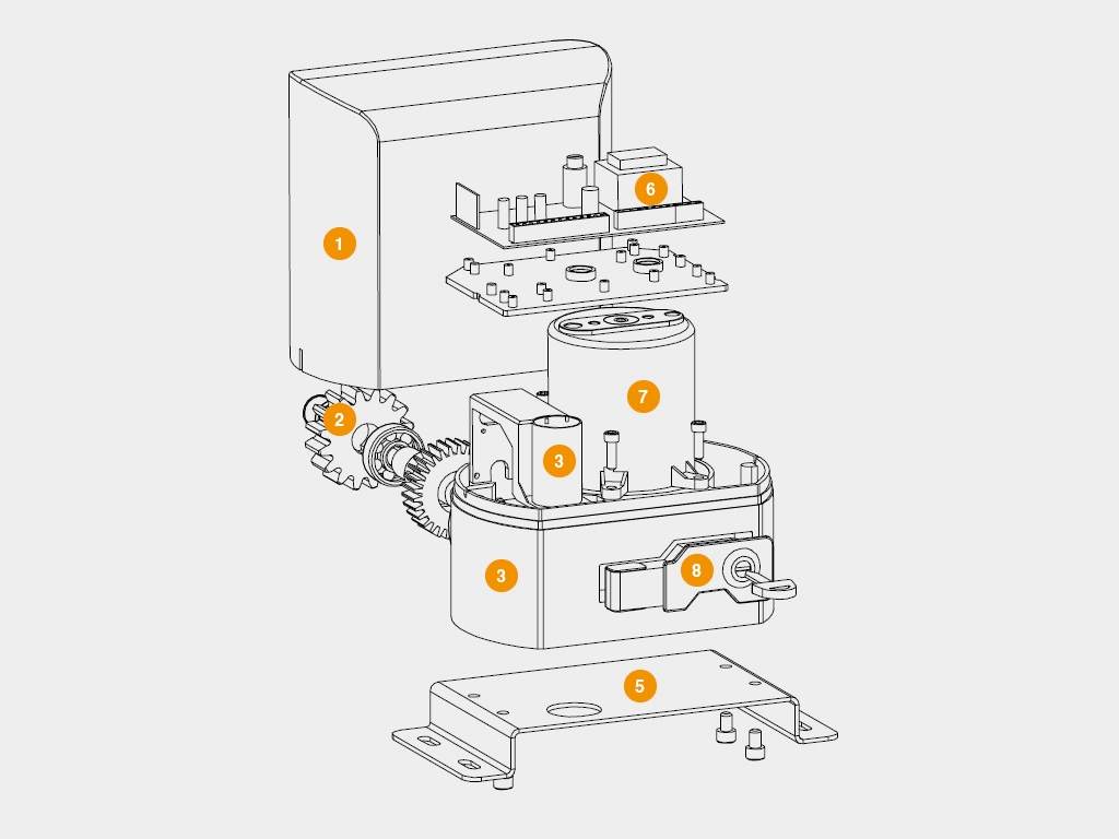 Электропривод, мaгнитные концевые выключaтели, монтaжное основание, крепежные элементы.