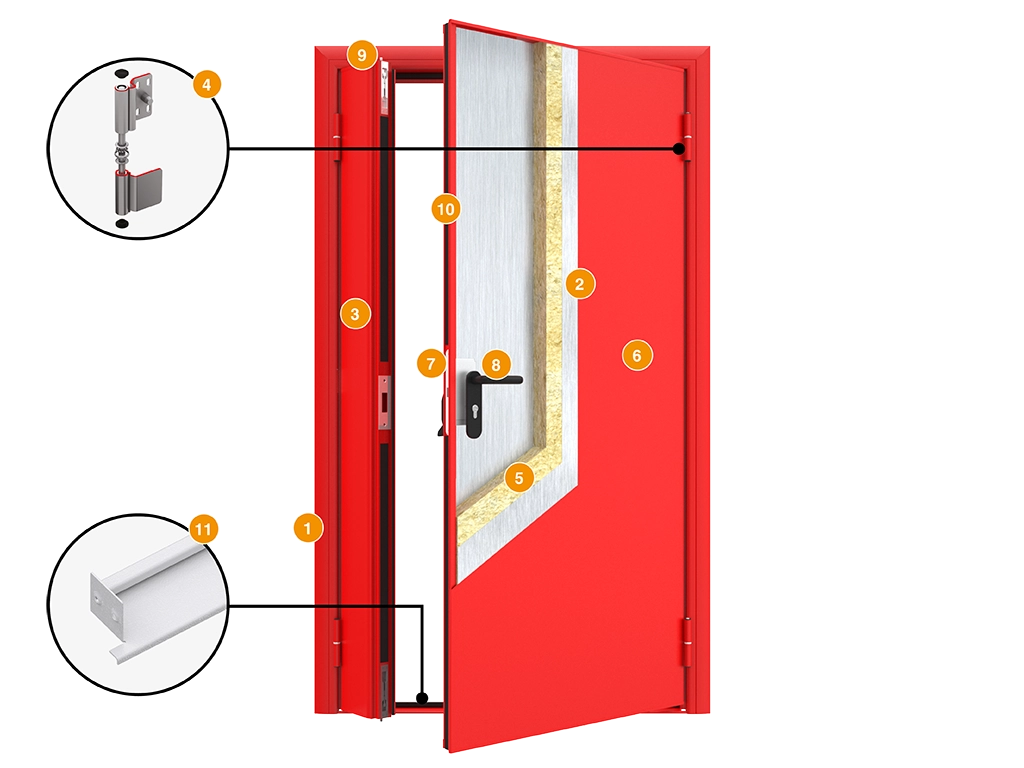 Противопожарные двухстворчатые двери имеют предел огнестойкости EI 60. Они сдерживают огонь в течение часа, что позволяет провести безопасную эвакуацию людей. Сфера применения - от школ до складов.