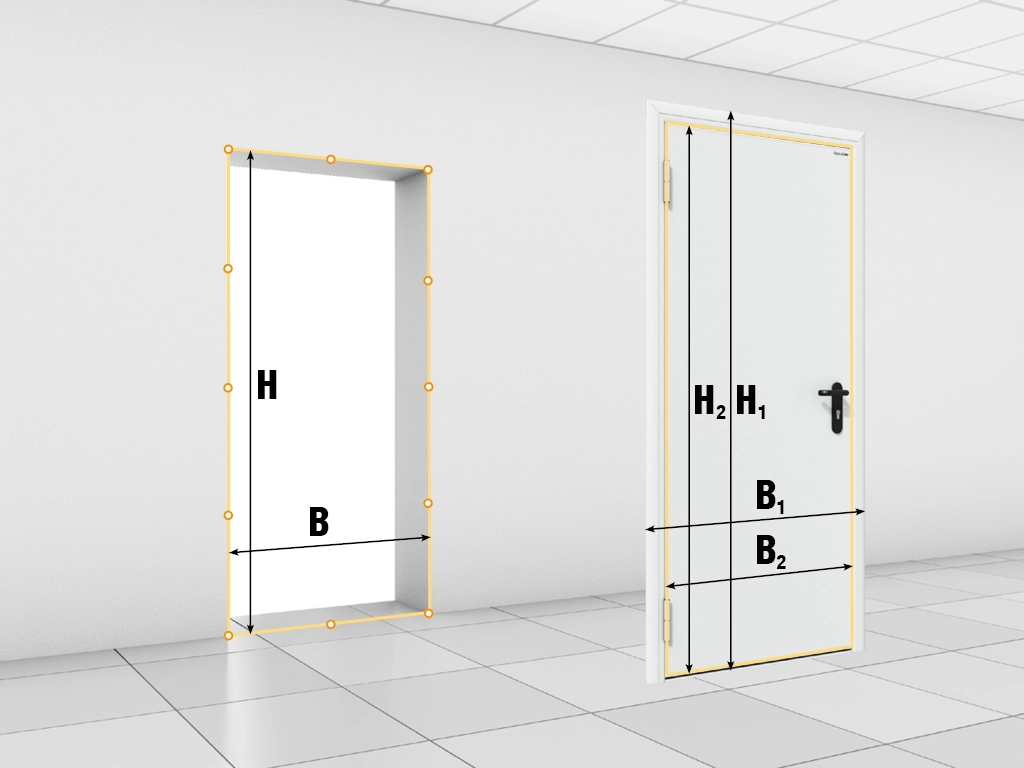 Дверь окрашена порошковой краской. В базовом варианте цвет серый (RAL 7035). По индивидуальному запросу возможна окраска в любой цвет палитры RAL. Возможна установка ручки «Антипаника».