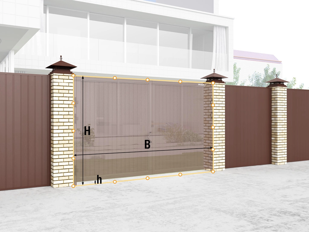 4. h — просвет (расстояние от нижнего края створки до уровня земли). Рекомендуемая величина — 100 мм.